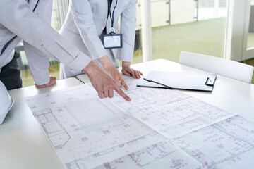 現場での作業を正確に進めるために、施工図や設計図の作成・確認を行います。建物の構造や設備の配置、配管や配線の経路など、現場に必要な情報を図面としてまとめ、施工スタッフが理解しやすい形に落とし込みます。また、設計図に基づき、工事が安全かつ効率的に進むように、細かい修正や調整も行います。図面作成は単なる作業ではなく、現場全体の施工品質を左右する重要な業務であり、正確性や判断力、技術的知識が求められる責任ある仕事です。